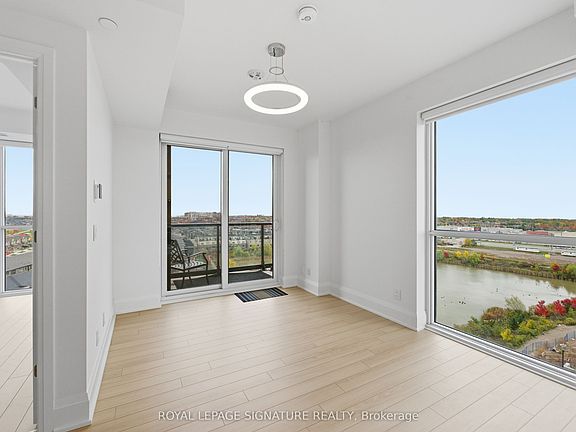 Step inside this brand-new, never-lived-in corner suite in the heart of Oakville! This gorgeous 1-bedroom + den condo offers modern luxury and bright, open living with large windows and views of Athabasca Pond and scenic trails. The kitchen features Caesarstone quartz countertops and backsplash, integrated stainless steel appliances, and sleek modern cabinetry, perfect for both everyday living and entertaining. The foyer welcomes you with frameless mirrored sliding closet doors, adding an elegant touch. Unwind in the spa-inspired bathroom, featuring a walk-in shower with a frameless glass enclosure, upgraded fixtures, a shower pot light, and a raised vanity for added ease and style. The primary bedroom is a bright retreat with large windows, pond views, custom zebra blackout blinds, and an upgraded light fixture, creating a calm and elevated space to relax and recharge. The versatile den is ideal as a home office or guest space. Enjoy access to first-class building amenities, including a fitness centre, media room, party room, and concierge service, all within walking distance to shops, dining, parks, and public transit.