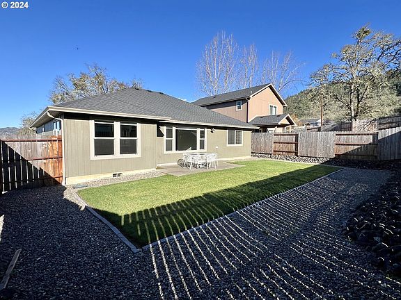Westside Roseburg home built in 2019 with 1523 SF, 3 bedrooms, 2 baths, split bedrooms, vaulted living room, vinyl plank flooring in the main areas, granite countertops, and stainless steel appliances. Fully fenced back yard with underground sprinklers.