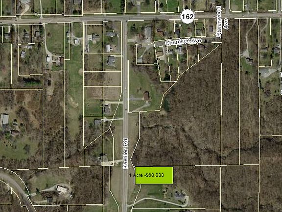 Lovely wooded, one acre lot in Maryville, IL on Keebler Road. Very secluded yet close to shopping and only 15-20 minutes to downtown St. Louis. All utilities at the road. Build your dream house.