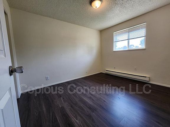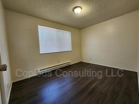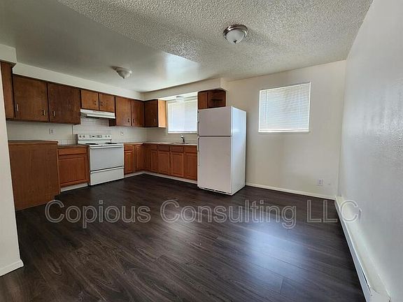 Large back yard with plenty of room to play. Alley access available. Front parking. Small storage shed. Tenant will also owe $45/mo for water, sewer, trash paid with rent. Conveniently located an easy 5 miles from freeway access. This upstairs unit has lots of light and all windows have blinds for privacy. The full kitchen includes a range/oven and a refrigerator. Plenty of room for a dining table & chairs. There is a good sized living area in addition to the 2 bedrooms and a bathroom with a tub/shower combo. Washer/dryer hookups are in the unit as well. Easy maintenance luxury vinyl plank flooring just installed throughout.