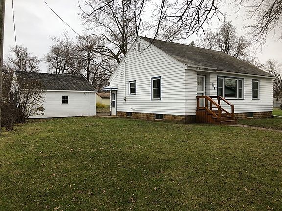 Ranch Style home 3 bedrooms, 1 bathroom, 2 car detached garage, full basement, large corner lot, close to churches