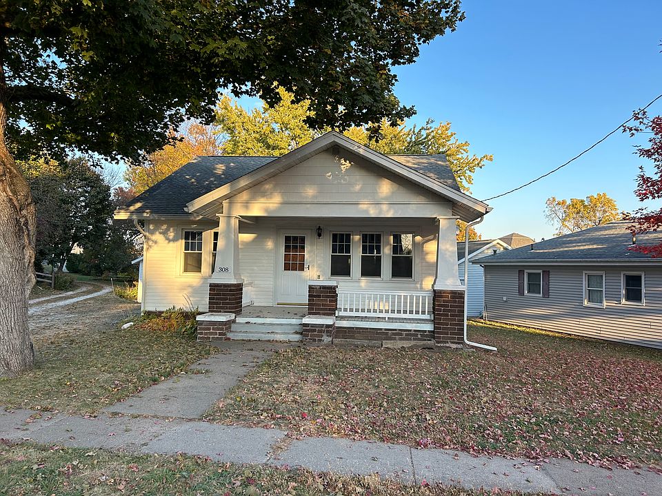 This is a beautiful older home that is walking distance to the school and downtown with a completely renovated kitchen, 2 stall garage, small backyard and patio. Dishwasher, stove, microwave, refrigerator, deep-freeze and washer/dryer included in the home. There are 2 bedrooms and a full bathroom on the main level with 2 smaller bedrooms on the second level. There is also a half bathroom in the basement near the laundry room. Renter responsible for all utilities (water, electric, gas).