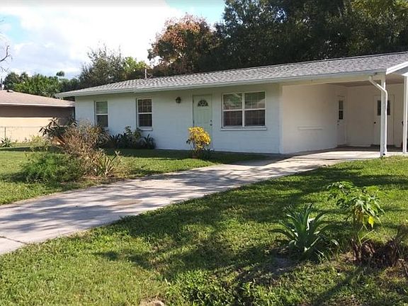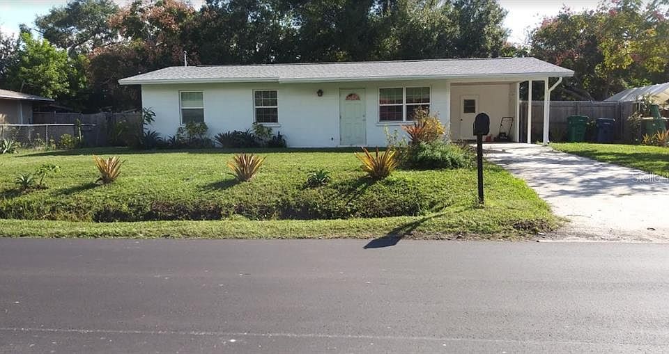 Centrally located 3BR/1BA Bradenton home 4 miles north of Sarasota Airport off Tamiami Trail. Attached carport with covered side entry and utility room with washer/dryer, water heater, and lots of storage. The front entry opens into a large living room which flows through to the kitchen and dining area. The kitchen and dining area both have lots of natural light and great views of the backyard. The kitchen has new, solid surface counter-tops and all newer appliances. The main hallway from the living room takes you to the 3 bedrooms. The master bedroom and bathroom are on the south side of the hallway, and the second and third bedrooms are on the north side of the hallway. Each bedroom has terrazzo floors, new windows and double door closet spaces. New Shingle Roof (2019). All New Windows and Central A/C less than 3 years old. Maintenance free tropical plants throughout the entire property.