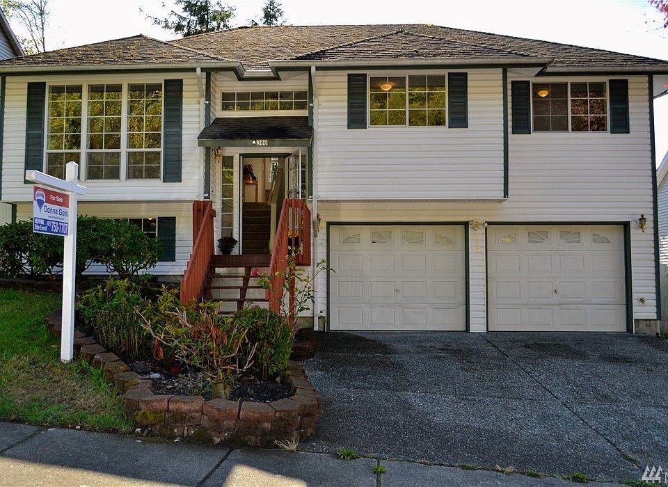 Tastefully updated split level Hanabrook home on cul-de-sac w/4 BD/3 BA. 2 master bedrooms (one on lower level possible fam rm). New laminate floors, carpet and paint. Low maintenance vinyl siding. New range oven and dishwasher in kit. Great room LR/DR. Slider to large covered deck - perfect for fall BBQs. Oversized, fenced yard w/fruit trees. 2 car gar. Convenient to I-5, Boeing, parks, public and private schools, beach and shops. Won't last - see today!