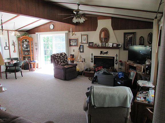 Nice two bedroom, 3/4 bath with an easy option for three bedrooms if desired. Home is manufactured and sitting on a full unfinished basement. Steel roofs on both home and garage. Two decks, one with a retractable awning, concrete walkway to paved street with a portion under an eave to get out of the elements. Gas fireplace. Some furnishings to stay. Newer clad, double-hung energy efficient windows. Home is easy to heat according to the seller.