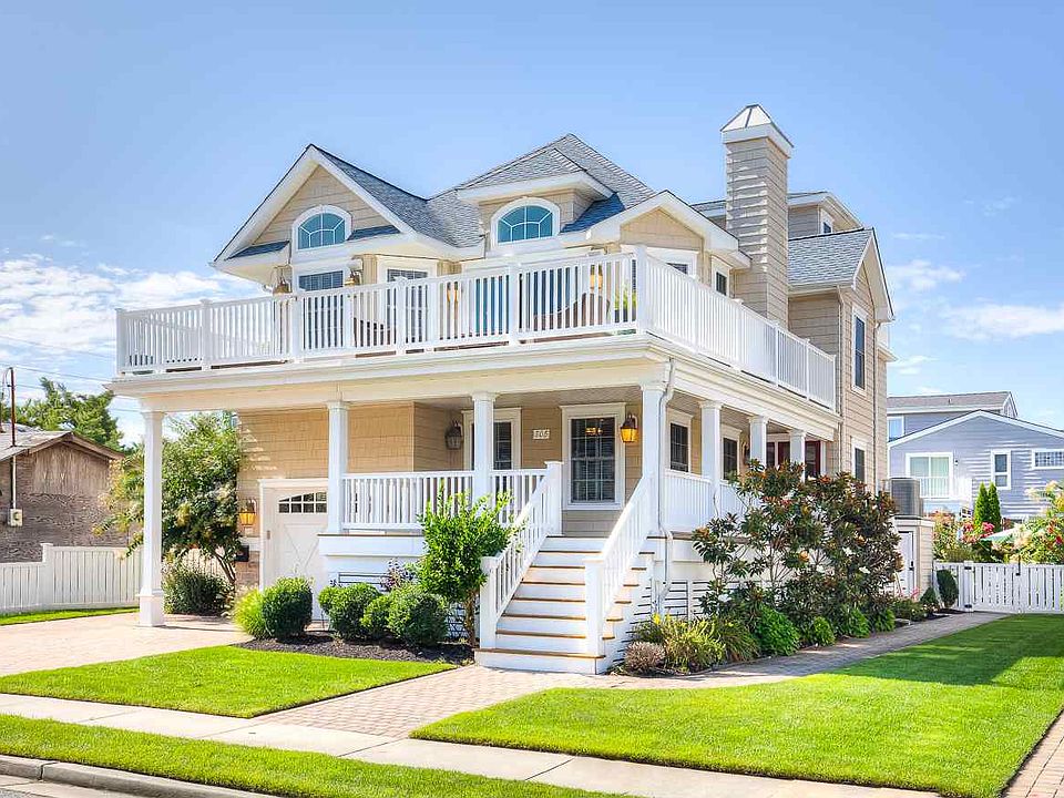 Another masterfully designed Avalon Beach home is being exclusively offered on the Bay side of 76th Street. This 5 bedroom, 5 bath home will exceed all of your expectations with spectacular bay views, a plethora of amenities and a plush landscaped pool area this is the pinnacle of Avalon Luxury living. Located just a short walk to the serene bayside and just 2 short blocks to the coveted Avalon Beaches you will have a peaceful retreat to entertain your family and friends. Arriving on the South side of 76th Street, the home employs plush gardens that wrap around a quaint shaded spacious front porch and above a vast fiberglass second story deck. With soft beige cedar shake siding and upgraded white vinyl railings this home exemplifies curb appeal. Immediately entering the home you notice classic warm hardwood floors throughout. On the first floor you have 2 spacious bedrooms, a large mud and laundry room with side exterior access, and a meticulously maintained family room. Here you have private access to the pool area and a beautiful granite covered wet bar, perfect for entertaining guests. Moving up to the gathering level on the second floor you're introduced to the expansive country kitchen with large walk-around island covered in granite, dining area and a gracious comfortable living room with bay views, gas fireplace and slider door access to your private fiberglass deck. In addition to a large pantry, you have an additional 2 full bedrooms and 2 full baths beyond the stair landing. The third floor is reserved for a luxurious private master suite, with private south facing balcony over-looking the over-sized pool down below. Here you have a large walk in closet and gracious master bath with both jacuzzi tub and large tiled stand-in shower. This home is loaded with amenities including outside shower, outdoor grill-scape, natural gas grills and a immaculate one car garage, this home makes for a family beach escape that is unmatched on the island.