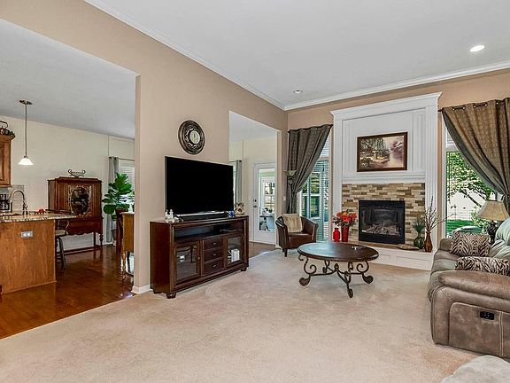 RARE FIND IN ONE OF KC’S FAVORITE 55+ COMMUNITIES! This GORGEOUS home beats new construction all day long! * METICULOUSLY-MAINTAINED home with many upgrades including a PEACEFUL, RELAXING SUN ROOM where you can enjoy quiet mornings watching the many birds who have made this area home - including Pella windows on three sides & storm door * UPDATED KITCHEN with brushed granite & new tile backsplash, pantry, & stainless steel appliances * Large breakfast area overlooking the sun room & with EASY OPEN ACCESS to the main living area, PLUS a formal dining room that doubles as a home office * Huge living room with 11' ceilings and stone-faced fireplace w/ gas logs for a quick, cozy fire whenever you want! * TWO bedrooms on main floor - Primary suite has oversized bathroom w/ tile plank floors, double vanity w/ built-in center storage tower, whirlpool tub & large shower, plus walk-in closet * Main floor also has a second bedroom & full bath * AMAZING finished lower level w/ stylish concrete floor treatment & wet bar in the large family room/rec room that easily fits a pool table in addition to lounging space, plus a third bedroom w/ walk-in closet & full bathroom w/ shower * This home has so many THOUGHTFUL UPGRADES to make life easier --- the two-car garage has exterior door for easy access, concrete slab laid under sump pump discharge to keep water away from house, easy to maintain landscaping, external water shut off installed in basement so you don't have to go outside in the winter to turn off, upgraded extra tall toilets in main floor bathrooms, storage cabinets added to laundry room, stained concrete front porch to match upgraded stone treatment on front of home, blower on fireplace, in-ground sprinklers * NEW COMPOSITE ROOF 2020 * Alexander Creek is an ACTIVE 55+ COMMUNITY in a QUIET pocket of Raymore, with BEAUTIFUL GREEN SPACE and TRAILS within the neighborhood!