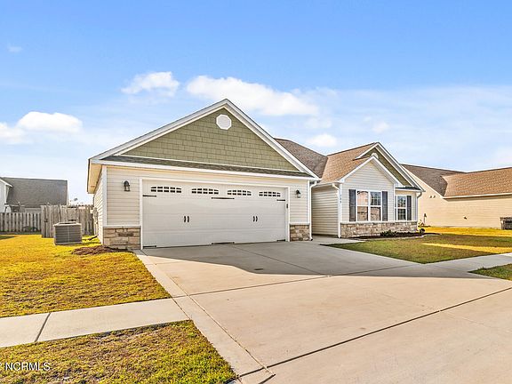This beautiful home located in Sterling Farms welcomes its new owners! As you enter the home you are greeted by the open living room featuring a cozy electric fireplace. The kitchen has all stainless steel appliances with plenty of counterspace. Off of the dining room is the large fenced in backyard, perfect for your furry friends. The master bedroom has a large walk in closet and an en suite equipped with a walk in shower, a large garden tub, and dual vanity sinks. This home is conveniently located only minutes from shopping and a few miles from Camp Lejeune. Schedule your showing today, this home won't last long!!