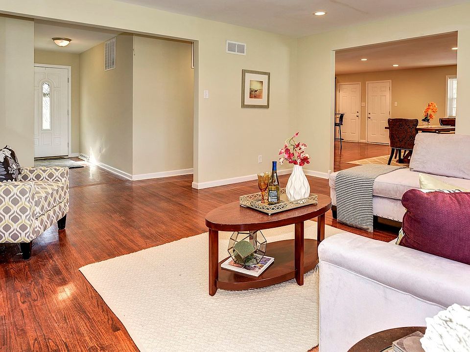 Stunning!!!! Just what you have asked pletely REDONE with open floor plan. This brick rancher situated on almost a half acre lot in Wellington Park. Versatile one floor living at its best, open floor plan with NEW hardwood floors throughout. Fourth Bedroom adjacent to kitchen can easily be converted back to a formal dining room or at home office. Fall in love with NEW kitchen with stainless steel appliances, granite countertops, cherry cabinetry, huge granite island and is open to a large dining area family room with gas fireplace that steps out to Sun Room and then onto Deck. The Master Suite has a large walk-in closet and huge Master Bath with double vanity sink, OVERSIZED stall shower with tile and rain-shower head. There are two additional full bathrooms and three more nicely sized bedrooms. This home has an oversized two car attached garage with plenty of room for two cars and storage area plus storage in attic. Convenient location and MINT condition!