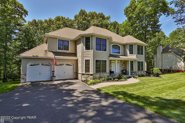 Picture yourself living in this stunning colonial with meticulous curb appeal, situated in a desirable well maintained neighborhood, and in close proximity to the many exciting attractions the Poconos has to offer! With this remarkable location, you can enjoy skiing, fishing, hiking, biking, outlets, restaurants, casinos and more! Once you see the 30 ft. deck and sprawling astro turf back yard overlooking a peaceful partially wooded lot, it will be easy to imagine the summer bbq's and large gatherings this home can accommodate. The immaculate interior is sun-filled and sophisticated with soaring ceilings, crystal chandeliers, and beautiful hardwood floors, and stone fireplace. An open concept kitchen w adjacent formal dining room and breakfast nook is perfect for entertaining.