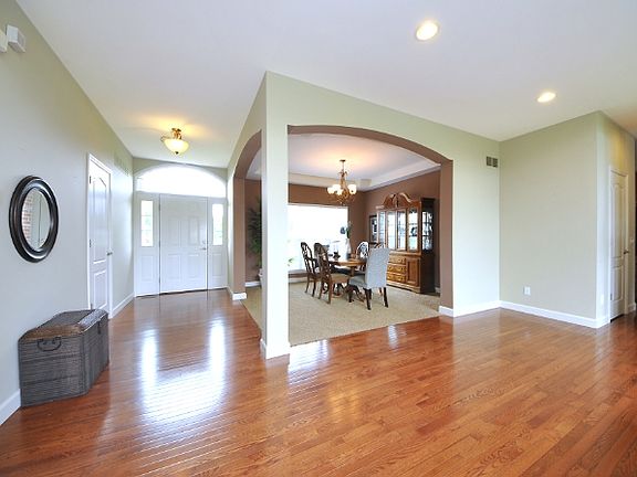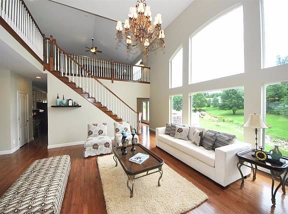 For more info or to schedule a private tour please call 636-229-8746 StLouisHomesByGina.com... Amazing 1.5-story on rare 1-ACRE LOT with 4 bedrooms & 3.5 baths in QUIET CUL DE SAC. Backs to SCENIC WALKING TRAIL leading to Winghaven Country Club, lake, library, restaurants & shopping! Elegant brick & stone front, covered porch, OVERSIZED 3-car garage. GLEAMING HARDWOOD spans most of main level. SOARING 2-story great room with WALL OF WINDOWS overlooking SERENE WOODED ACREAGE. UPGRADED KITCHEN with 42" maple cabinets, QUARTZ countertops, SS APPLIANCES & breakfast bar. Open to cozy HEARTH ROOM with gas fireplace, door to scenic deck. MAIN LEVEL MASTER suite with large bath, wide double vanity, deep JETTED TUB, separate shower, ENORMOUS CLOSET. Walk-in closets in almost every bedroom! LARGE VAULTED LOFT FLEX SPACE to fit your lifestyle. High-ceiling WALKOUT lower level with rough-in bath ready for finish. Professional landscaping, flowering trees, shrubs & boulders. Near 7,000-acre wildlife conservation area, hiking & fishing. HWA 13-mo home warranty provided. Agent owned.