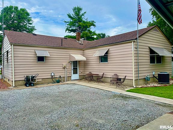 Nice Three Bedroom, 2 bath home in great location. Most recent updates includes completely remodeled kitchen (cabinets, countertops, backsplash and flooring) The original hardwood flooring in living room/dining area and 1 bedroom were professionally refinished. Newer carpet in the other bedrooms. The master bedroom has double closets, built-in dressing table and storage. The house sits on 1/2 acre lot that runs from Il. 14 (Bailey) to Bond street and has a separate entrance to the garage from Bond Street. The garage has been updated with siding and a roof and has 300 sq. ft. insulated shop. There is also asphalt drive at front to newer double carport and storage building. Improvements: Replaced Central Air 2017, New awnings on east, west, south, master bath completely remodeled, complete new kitchen with 39 ' cabinets, under cabinet lighting, granite countertops, sliding pantry next to refrigerator, (complete wiring for dishwasher behind cabinet, 17". added insulation in attic , garage resided approximately 2 years ago also new shingles, new shed 12 x12, new carport 24 x 24 with new concrete and sidewalks, 2015 treated for mold as a precautionary measure/ no mold found. Brand new whirlpool side by side refrigerator brought June 2023 included. Foundation of home has self closing vents. GFI in both bathroom, kitchen, and outside. Soft close drawers in Kitchen.
