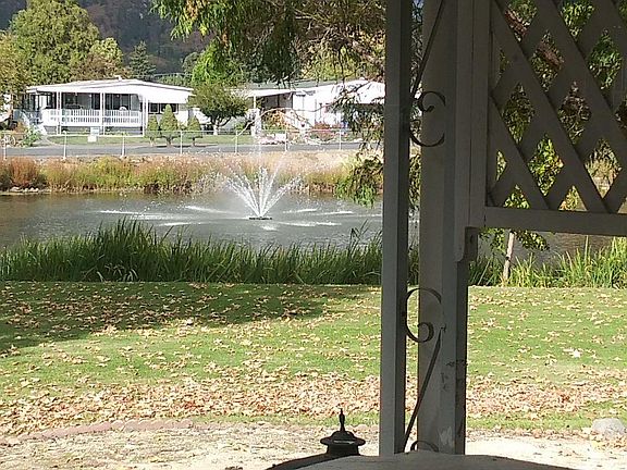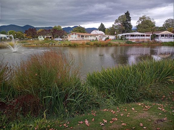 For more information or to setup a showing please contact Kiva at 541-646-5081 - SWEET little Home in a QUIET Park! Located in the desirable 55+ ROGUE LEA ESTATES in Grants Pass, this spotless and beautifully maintained home offers a WATERFRONT VIEW on your very own private and spacious deck! Recently updated and weatherized with new vinyl windows, this 1080 square foot home feels quite spacious. Features wrap-around windows and a glass slider in the living and dining rooms with a gorgeous FOUNTAIN VIEW. Both bedrooms provide ample room with full wall length closet storage. The Master Bath showcases a SureStep Walk-In Tub for safer and more convenient bathing/showering. For convenience, the immaculate kitchen is positioned with the Dining Room on one end for easy access and Laundry Facilities on the other end. Fridge w/frostless freezer and Washer and Dryer included. Pets are allowed and community amenities include: Clubhouse, Recreational Facilities, and Boat/RV Storage. Plus fishing for Residents and family.