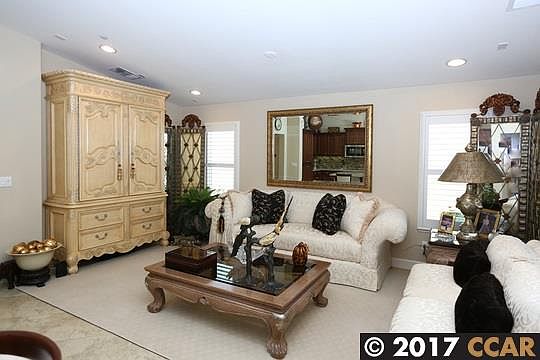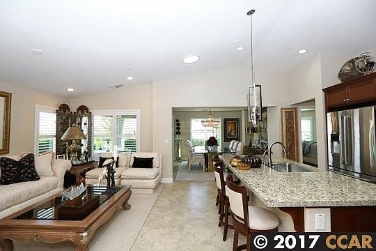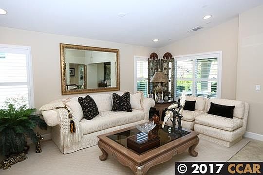 Elegant Alisal model with over $70,000 of upgrades. Beautiful glass door enters into mirrored entry way. Plantation shutters throughout the home. All granite kitchen with glass tile back splash. Large center island with seating plus chrome pendent lighting. 2 skylights in the great room & kitchen. All tile flooring all set on the diagonal. All new carpeting in master bedroom & walk-in closet. Wired for home theater. Covered patio with lighting. Fully landscaped with automatic sprinklers front and back. Stamped concrete rear patio and driveway. Don't miss this one.