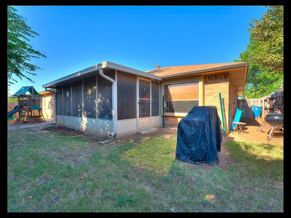 Feel right at home when you step inside! This lovely 4 bedroom home is in an established Edmond neighborhood. It offers vaulted ceilings and tons of space. The living room has a grand feel with a stately mantle over the cozy fireplace! Experience the convenience and beauty of a built in bookcase as well which flows into the dinette. The kitchen features an updated range with plenty of cabinet space and connects to the dedicated laundry room and the pantry. Step outside and enjoy the fresh air but stay dry from the rain in the newly built patio room! New water heater installed in December 2020. This home has been loved and is in great condition.