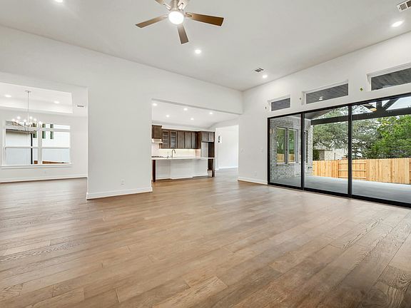 This beautiful new home boasts $203,000 worth of upgrades. The Chesapeake, a stunning ranch-style residence, boasts an open living concept with soaring ceilings. As you step into the extended entry, you'll find the study, then opposite side 2 bedrooms with a J/J bath. Further in, the drop-zone on one side and powder bath on the other. Walking in your greeted into the expansive family room, complete with Western 3 Panel Sliding Doors leading to the covered patio. The kitchen is a baker's dream, featuring an extra-large island, double ovens, a warming drawer, pull-out spice rack, cookie divider, trash pull-out, and drawer stacks. With five bedrooms, 4.5 baths, office and game room, this home offers ample space. The main floor hosts 4 bedrooms; formal dining, kitchen dining, home office and guest suite. The owner's spa bathroom is complete with a soaking tub, an open walk-in shower, and separate his-and-hers closets with built-in cubbies. Upstairs, you'll find a game room, full bath and an extra large room we call "a bunk-room area". *Bunks not included* The extended covered patio provides the perfect spot to enjoy hill country living. Don't miss out on this private and peaceful cul-de-sac lot, complete with a three-car side entry garage.