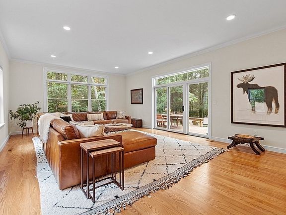 Beautiful five bedroom Colonial set on two private acres in a most desirable cul-de-sac neighborhood! Enjoy the numerous updates including a chef's kitchen with professional grade appliances, stone counters, an island with seating and a dining area. From the open kitchen admire views of the backyard with expansive deck - ideal for entertaining or family living. Adjoining the kitchen is a sunny family room, a dining room and a freshly updated sunroom with outdoor access. A fireplaced living room and home office or mudroom complete the first floor. Upstairs, the five bedrooms include a generous primary suite with custom walk-in closets and a spa-like bath with double vanity, oversized shower and large soaking tub. The spacious lower level offers endless options for a future playroom, exercise area and home theatre. Perfect for those who enjoy a tranquil setting, friendly neighborhood, nearby new schools, conservation trails, bike path and close proximity to vibrant West Concord Village!