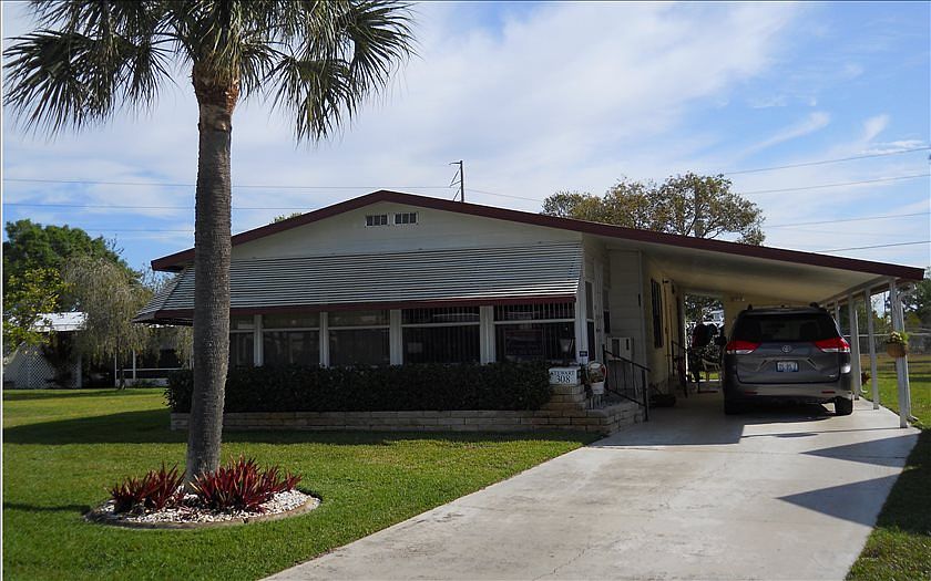 Great Doublewide mobile home move in ready located in Sebring Village near restaurants & shopping! spacious rooms with appealing floor plan. Front enclosed 10 X 24 patio to relax or entertain guests. newer A/C & Heating system, new windows in kitchen & lanai, quiet neighborhood and great clubhouse activities with pool, fitness room.Small desk area off the kitchen, walk in closets and lots of storage. Inside laundry room and large carport with shed/workshop.