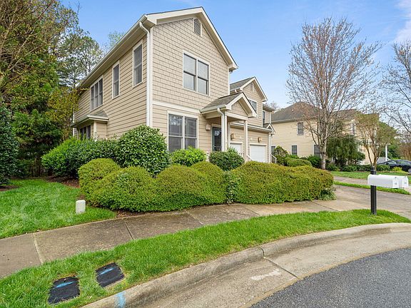 This two-story Townhouse is tucked in a cul-de-sac in the small, well-maintained Pickard Oaks Community. Ideally located midway between UNC and Duke, it is a five-minute walk to the ''D'' busvstop which will take you to downtown Chapel Hill, the UNC campus and the UNC Medical Center. Foodies, or those who just love the hot-bar and great snacks will appreciate the 3-minute car trip or 15 minute walk to Wegman's, and short drive to Trader Joes & Whole Foods as well. High ceilings, beautiful light and hardwood floors welcome you as you enter the living and dining area featuring glass-enclosed gas fireplace. A great cooks kitchen with pull out easy glide shelves and drawers in the cabinets and pantry. It features a large table-height workplace Island with room to seat 4-5 to ''eat, drink and be merry'' as you cook and serve. Private back deck off the kitchen faces into trees, not neighboring homes. The First floor also has a carpeted full bathroom with tub/shower and a bedroom/den/playroom Second floor features a large, open Den/Loft at the top of stairs and hardwood floors throughout. The Primary Bedroom has an ensuite Master Bath with double sinks, and a walk-in closet. The third Bedroom, a full bath and large linen closet. The 1 car garage has 2 handy ceiling storage racks is entered off the downstairs hallway. The driveway accommodates another car. There is also on-street parking.