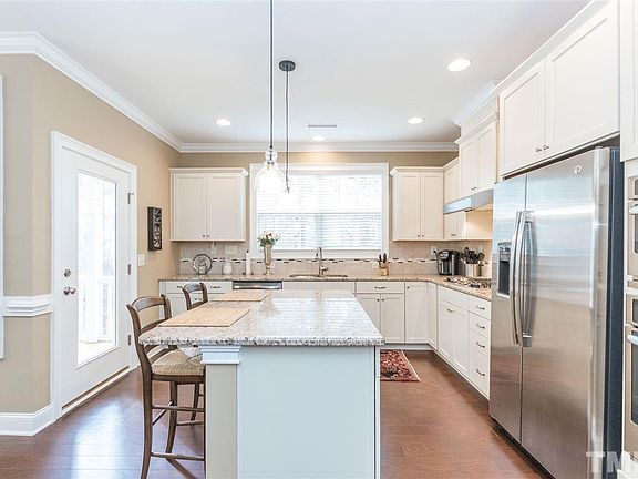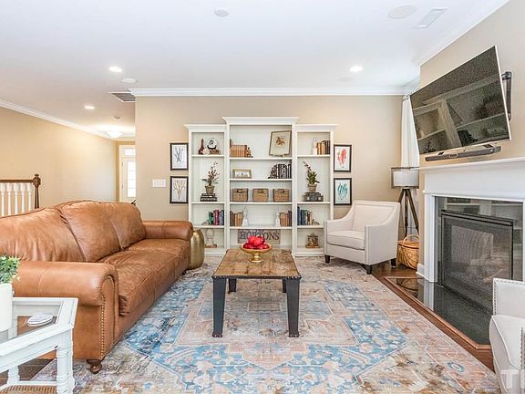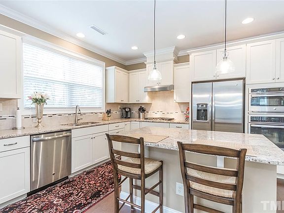 BETTER THAN NEW- Custom built 3 level END UNIT townhouse off Weston Parkway in Cary. Fantastic wooded private lot & 2 car garage. The main level boasts an open floor plan, upgraded hardwoods, dining area, large deck, kitchen with stainless appliances, granite, & upgraded cabinets. Basement has a large family room plumbed for a wet bar, bedroom/office & full bath. Master suite is expansive w/ private porch & a large custom upgraded tile shower. TV wall mount does not convey. Second floor laundry.