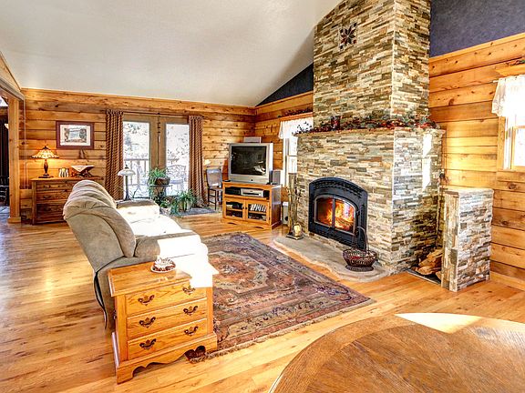 SEARCH PROPERTY ADDRESS ON YOUTUBE FOR VIDEO WALKTHROUGH. Wow, what a find! This is a seasoned original Log Cabin Home, ltd. The land backs up to National Forest and is located in 11 Mile Ranch, with exclusive access to Lake George (which is fully stocked year around). The views from the 2 story wall of windows and the upper loft are breathtaking. The Quadra-Fire fireplace is an impressive 4 zone combustion system which has 2 remote zoned heaters to transfer heat to rooms on the lower level as well. Visit the Virtual Tour for more info and an accurate map.