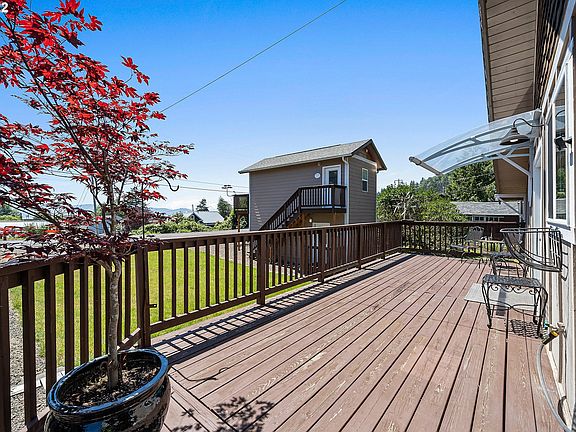 Dreaming of a place at the coast? This lovely bay view home will check off all the boxes! Main home has 2 bedrooms & 1 bath w/a comfortable open living room/kit area. Bamboo laminate+tile flooring throughout. Countertops are acrylic sealed concrete w/a flagstone backsplash. Adorable separate guest qtrs has a Tillamook Bay view! Plenty of room for friends & family! 3 decks w/covered patio w/a fabulous yard & fire pit and wonderful outdoor area. Wired generator+Car Chg Station. Room for your Boat!