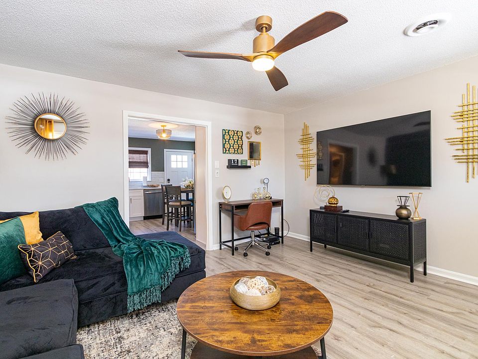 3 mins- Smokehouse at Steve's 10 mins - Burlington City Park Amusement Area 12 mins- Tanger Outlets Mebane One (1) rear parking lot Dedicated work desk Master and second bedrooms feature Queen-sized and double-sized beds. 1 clean and sanitized full bathroom with bathtub Free fast Wi-Fi Living room with comfy seating and a smart TV Kitchen is fully equipped with stainless steel appliances including a large fridge, stove, and a coffee station Dining area with seating to comfortably accommodate 4 Full sets of hotel quality sheets and duvets for the beds and enough towels A coin-operated washer and dryer are also ensuite for guests to use. All utilities fee included in base rent First month rent due at signing One time payment for cleaning Signed lease agreement and background check required before the stay Important: For damage protection, you'll be asked to choose between a $10 damage deposit or a $35 damage waiver through our trusted third-party provider, Truvi.