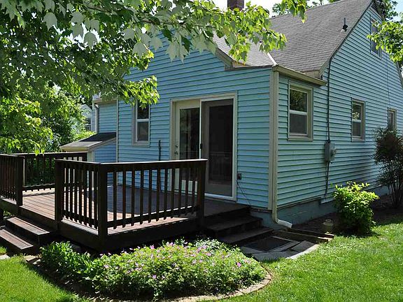 Charming cape with great yard! From the front porch enter into the living room with large picture window, door to second level. The remodeled kitchen features good cabinet space plus eating area. In addition the main level features a remodeled bath and two nice bedrooms with hardwood floors, Upstairs is one bedroom plus an office/play area. The deck off of the kitchen overlooks the private back yard. As an added bonus there are two storage buildings with electricity. The off street parking can accommodate two cars. Brand new hot water heater, laundry room conveniently located off kitchen.