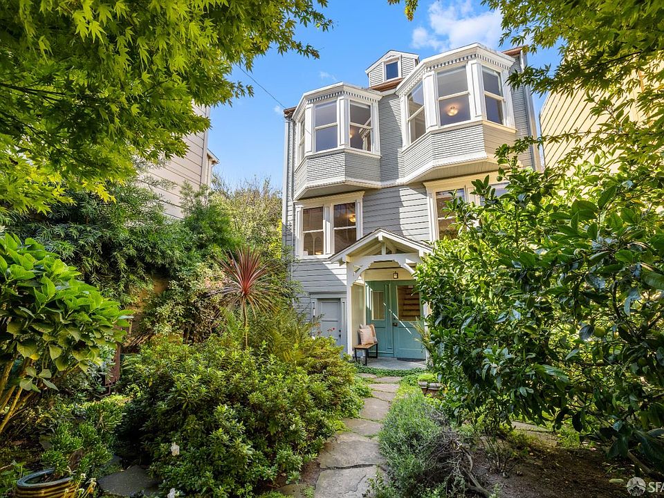 Centrally located in the highly desirable Eureka Valley neighborhood, this storybook 3BR+/3BA fully detached single family home is highlighted by a gated magical front entry garden and San Francisco downtown skyline views. The home offers a rare blend of timeless charm and character while featuring countless upgrades throughout that provide comfortable modern day living. The versatile floor plan on the main level features a living room, dining room, dedicated office, cozy den/family room, full bathroom, and updated kitchen with french doors providing direct access to the sunny outdoor deck surrounded by a private serene setting. The upper level has sweeping views of downtown and consists of three spacious bedrooms including the primary suite with deck and two full bathrooms. The enchanted park-like front garden has a variety of mature landscaping including maple, lemon and fig trees that provide a peaceful setting for the outdoor enthusiasts. Other highlights include wood floors throughout, detached garage, ample storage, solar panels and much more. Conveniently located near public transportation, just a few blocks to the popular downtown Castro District and with a Walkscore of 91, this special home is ideal for those seeking the perfect blend of comfort, style, and convenience.