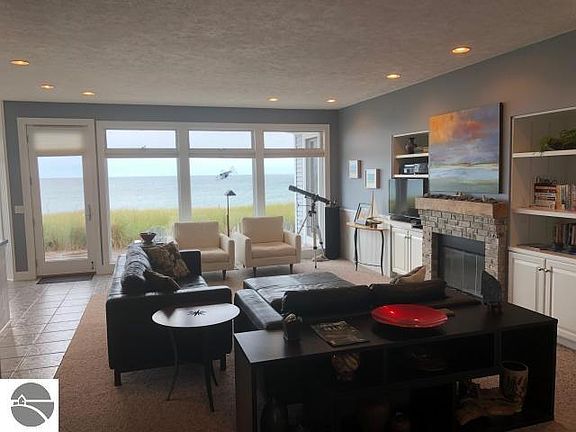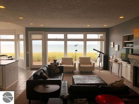 Tucked back in the trees, this perfect year-round LAKE MICHIGAN home or cottage has 100 feet of walk-right-out sandy beach frontage. Yes! Walk-right-out sandy beach frontage! Three bedrooms, three full bathrooms, gas fireplace, central air, 2-car attached garage, bonus outside shower, unfinished basement with an egress window and views of the Manistee Lighthouse! Seriously! This is it! Great price among million-dollar homes. Built in 1999, everything you need is all on one floor! Just come up and relax and enjoy the sunsets of Manistee. All dune grass, vinyl siding, gas-operated generator, furnace is approx. 5 years old, marine-grade Andersen windows, city water/sewer. Walk to the lighthouse every day in the one-of-a-kind location!!