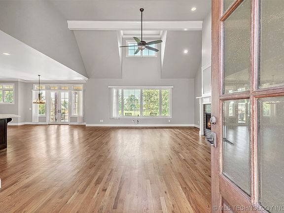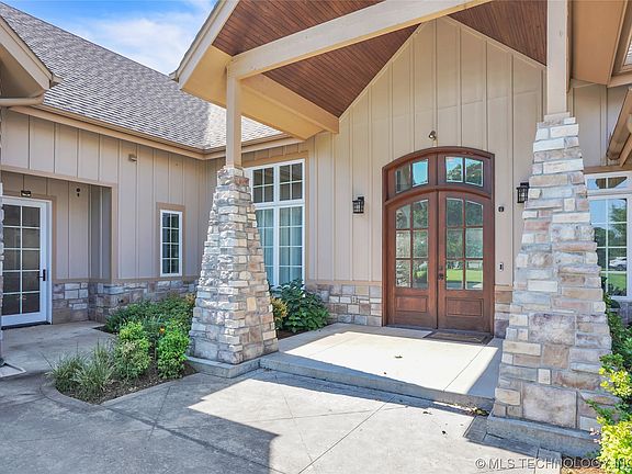 A remarkable property on over 3/4 of an acre in Jenks with 4 bedrooms 4 full and one half baths plus game room with closet on second floor over garage. The Primary bedroom has a beautiful spa bathroom and wonderful views of the spacious back yard. The second bedroom is on the first floor with a gorgeous full private bath. The chefs kitchen is open to large the great room with fireplace and dining area with a wall of widows overlooking the backyard pergola/patio and fire-pit. The spacious third bedroom is located upstairs with a spa bath and could be a second primary bedroom with a huge walk out patio overlooking the approx. 3/4 acre lot. Two more rooms share a pullman bath on the second floor as well as tons of closets and storage throughout the home. The property is s on a quiet dead end street moments i the Creek Turnpike, shopping and entertainment! Location Location Location. No Neighborhood HOA. A truly spectacular property!
