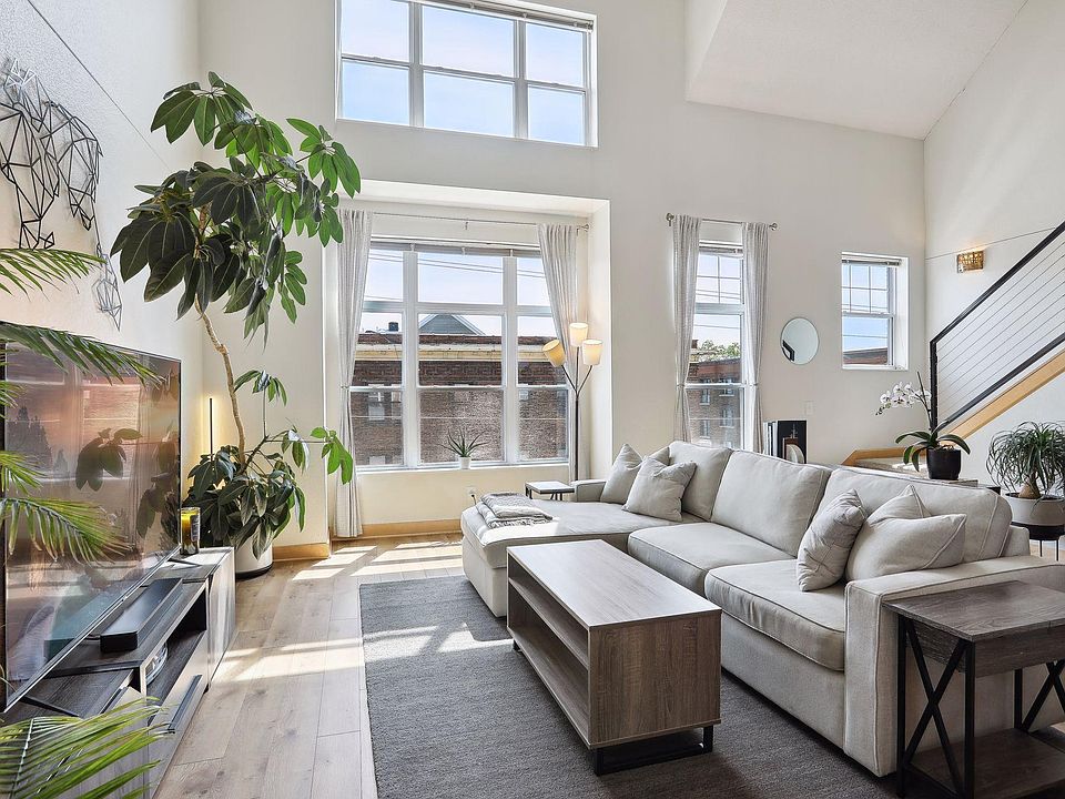 Welcome home to this sun-drenched, updated condo w/MPLS skyline views. You'll feel the magic the moment you walk in - vaulted 2-story main floor with a wall of windows - an airy and modern luxury. Updated & open kitchen designed with the chef in mind - ample storage & tons of counter space. Generous dining area anchored by custom dry-bar - great spaces for entertaining! Main floor 3/4 bath, Laundry room & huge pantry/storage. Upper level boasts Primary bedroom with generous walk-in closet, updated 4-piece bathroom with double vanity and large 2nd bedroom. Amazing light-filled loft space - how will you use it? Yoga? Office? Vinyl listening lounge? Art space? New lighting throughout. Attached heated parking, secure building. The perfect combination of modern function and classic MPLS sensibilities and just a short walk to downtown - this unit is sure to please! Just a hop skip and a jump from everything the city has to offer! This one is a GEM.