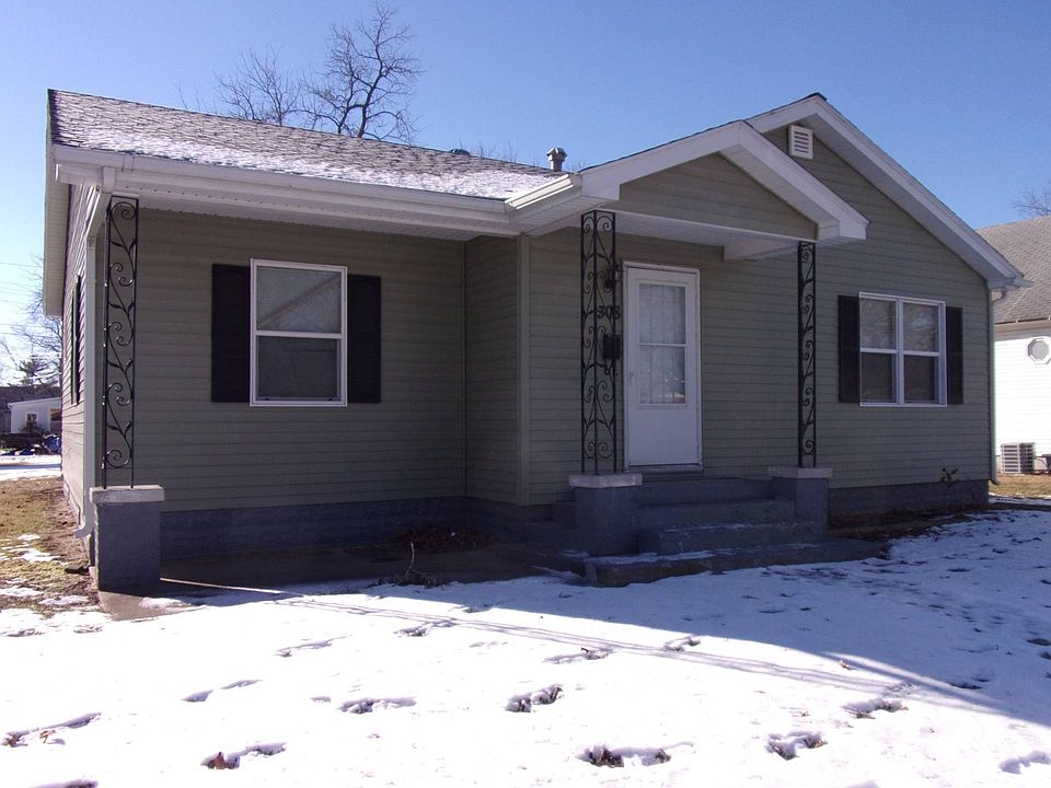 This property is in a residential neighborhood close to the little league ball fields. It is improved with a one story home consisting of entry with closet, large living room, 2 bedrooms, eat in kitchen with eating area, wood cabinets, and appliances stay, a full bath with pedestal sink and storage. There are some replacement windows, vinyl siding, and a open porch in the front. There is a full basement with washer and dryer area with appliances.