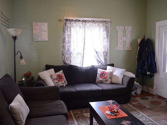 This charming 1 1/2 story home features large rooms, tall ceilings, and wonderful living space throughout! On the main floor you will find the living room, two bedrooms, the bathroom, a large dining room, kitchen with solid wood cabinets, and a cozy den. Upstairs there are 2 additional bedrooms and a great storage closet! Relax on the covered front porch or hang outback on a newly built deck. The back yard is fenced-in with a swing set. Enjoy the convenience of being located close to downtown, schools, and parks. Dont wait to call, set up your showing today!