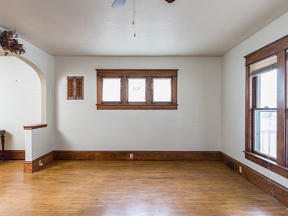 Why Rent When You Can Own This lovely Character Home. Inviting covered front porch, beautiful hardwood floors & arched doorways. Spacious living rm, formal dining & charming kitchen. 2 lrg bedrooms & full bath upstairs & a full basement with full bath & room for you to finish. All appliances included. Maintenance free, 1.5 car garage and small easy to care for yard. Close to downtown & City Park!