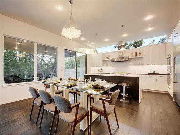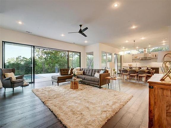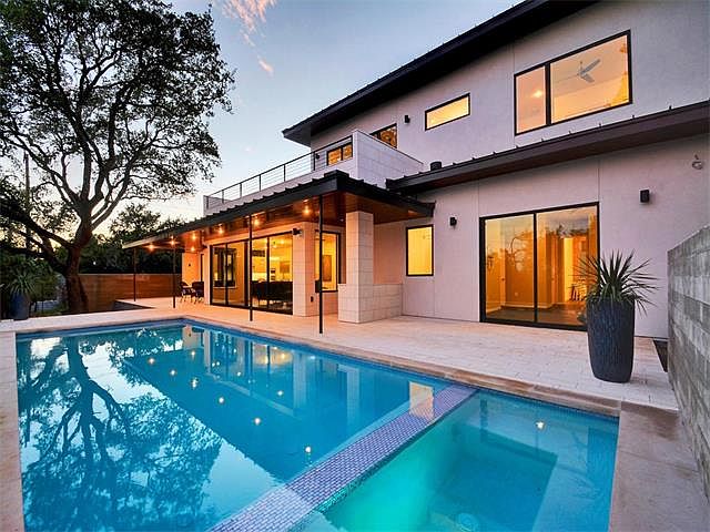 Incredible modern new construction designed by Dick Clark Architects w/fabulous city views. Top of the line finishes w/wall of glass sliding doors blending the interior and exterior living. Gourmet Kitchen opens to family lvng w/fireplace. Master on main level & luxurious master bth + Bdrm/stdy on main floor. 2 additional beds w/full bths/living area on 2nd level with large upper deck. Backyard oasis w/ pool/spa & covered outdoor living. Hardwood & tile flooring, soaring ceilings Energy efficient home.