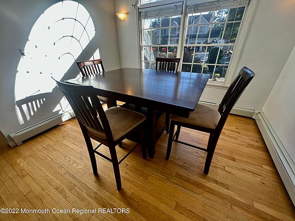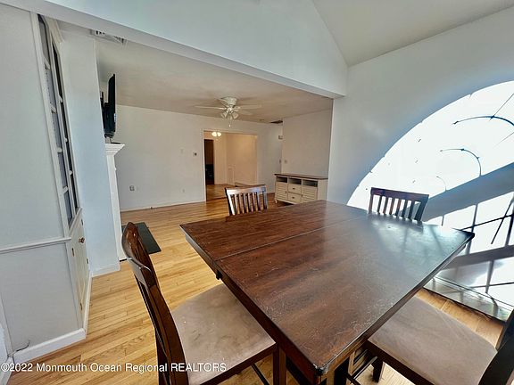 Impeccable curb appeal in Forked River. An ideal first-time or forever home! Step into your tiled foyer and immediately admire the abundant natural lighting that shows off the open, spacious design. Natural hardwood flooring spans the living and dining rooms, completing the living room is a wood-burning fireplace with marble accents and finely finished built-ins. A stately cathedral ceiling and arched Palladian window extends to the peak in the sun drench dining room. Neatly appointed cook's kitchen with breakfast bar and dinette leads to a nicely sized den with sliding door leading to an oversized two-level deck. Master ensuite boasts a full bath and walk-in closet. Two additional bedrooms, each spacious with hardwood flooring and full bathroom. Nicely maintained and in move-in condition!