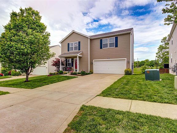 Don't miss out on this updated home in Wentzville! You'll immediately notice the curb appeal with beautiful landscaping and a covered porch. Enter to the foyer which leads to the bright kitchen. You'll love the quartz counters! Entertain in the open layout of the great room. The dining area features a gorgeous chandelier, and gleaming laminate floors run throughout the space. Convenient main-floor laundry and a half bathroom complete the first level. Upstairs, relax with family in the loft area which leads to the two secondary bedrooms and full bathroom. The master bedroom is a retreat with a walk-in closet with organizers and en-suite bathroom. The lower level is clean and ready for your finishing touches! Grill on the patio, complete with a fire-pit, which overlooks the level backyard and open ground beyond, or enjoy the subdivision walking trails and playgrounds. Just moments from schools, highways, parks, shopping, and restaurants, this home is just waiting for its new owners!