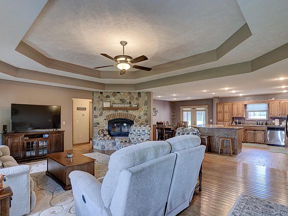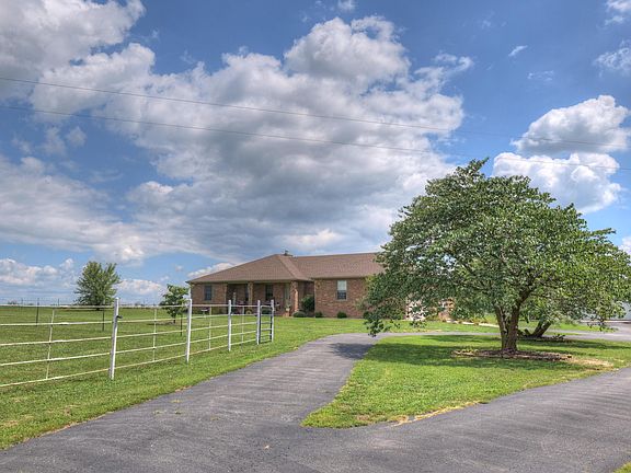All brick 3 bed/2bath home on 20 acres! Home features over 2000 SF on one level and has been lovingly maintained and updated. The private driveway shows off the fruit trees (4 apple, 12 blueberry, and 1 cherry) and extends back to the 30x40 heated shop. Shop includes a propane heater, 2 automatic garage doors, and a welding plug. The main house was professionally landscaped and had downspout pop-ups added in 2020. The covered front porch is the perfect spot to enjoy this peaceful land. Inside, the living room features tray ceilings, a rock wood burning fireplace (cleaned 2022), and an open floor plan to the eat-in kitchen. Kitchen has ample cabinet space, a large island with bar for extra seating, granite counters, and stainless appliances. Off the dining area is exterior access to the enclosed back porch. Primary bedroom features an amazing attached bathroom with his and hers vanities, a jetted tub, walk-in shower, 2 walk-in closets, and a safe room! Split bedroom plan with 2 more bedrooms and a full bathroom. Oversized 2 car garage contains utility closets with the water softener, well pump, HVAC, and water heater. Outside, you will find a Generac generator that operates the main house AND shop, security system, corral, pond, and small cabin building. NEW roof installed 2019. Quick access to Hwy 39.