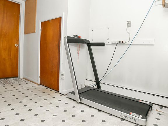 - Exterior features: Bicycle storage, Heating system: Baseboard, TV, queens bed, backyard access, sofa, center table, treadmill