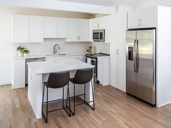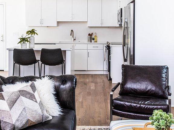 This house includes modern interior finishes- quartz tops, custom cabinets, marble baths, wall mount toilets, beautiful chrome fixtures, as well as appliances, electrical, HVAC, and plumbing. The living room has vaulted ceilings for a spacious feel that flows into the kitchen. In the posterior, there's a large rear entertaining deck, front porch, and covered parking area. Additionally, there is a full basement for storage needs. The renter is responsible for all utilities and yard maintenance. Smoking is prohibited inside the property.