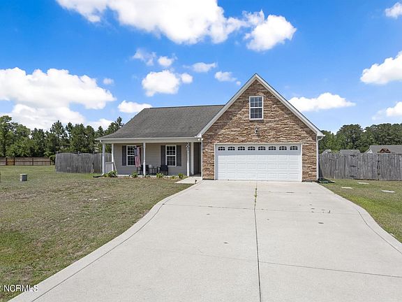 STOP what you're doing- the home you've been waiting for is here! This beautiful 3-bedroom 2 bath + bonus is ready for new owners. Walk in and notice the spacious, open floor plan, vaulted ceilings, brand new LVP flooring and beautiful (never used, practically new) fireplace. Leading you to your kitchen featuring stainless steel appliances, a new refrigerator and new garbage disposal. Your master bedroom features a vaulted ceiling, walk in closet, and dual sink vanity in the master bathroom. Up just a few stairs you will find the bonus room, notice the 2 closets with shelving - tons of options for the bonus room! Your backyard is completely fenced in, you can enjoy almost half an acre of privacy while relaxing by the firepit. Don't worry about storage space, the shed comes with the house! Front and back doors have just been replaced, new storm doors, new water heater, and the septic has just been pumped. Sitting in a cul-de-sac in Forbes Estates, this home is conveniently located just 13 minutes from New River Air Station, 18 minutes from Camp Lejeune main gate and less than an hour from Topsail Beach. No city taxes, no HOA - this home won't last long. Schedule your showing today!
