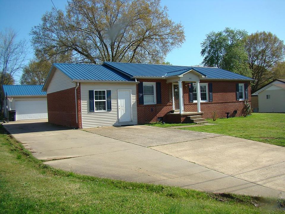 3 bedroom 2 bath brick home in the heart of Paris. This home features a 24 x 36 shop/garage, a colored metal roof and a concrete driveway.