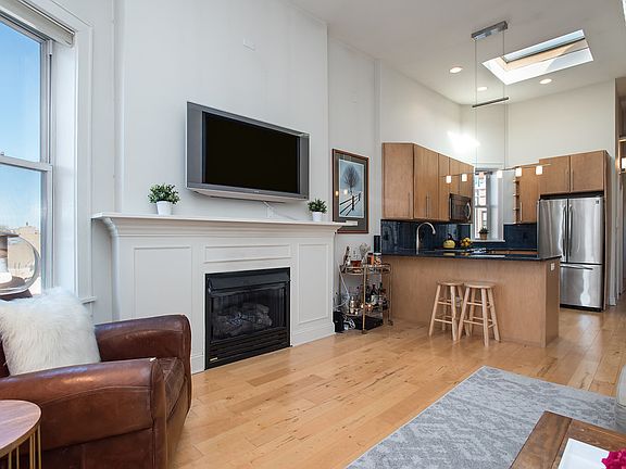 Welcome home to this updated & contemporary top floor 2 bedroom condo in a prime downtown Hoboken location. Condo features vaulted ceilings, exposed duct work, two large skylights, a gas fireplace with large mantle, recessed lighting and wide-plank hardwood floors. Open chef???s kitchen offers custom glass tile backsplash, stainless steel appliances, Caesar Stone counter & breakfast bar. Master bedroom features twin 6??? windows, ceiling fan & fantastic closet space. Second bedroom enjoys garden views & great afternoon light. A flexible third space can easily be used as a dining area, office or nursery & also includes a large upper storage space. Bathroom features a cylindrical glass basin sink & detailed tile work. Central A/C & in-unit laundry complete this fabulous home. All this on a prime Garden Street block with convenient access to Hoboken???s best shopping, dining & parks with an easy commute into NYC.