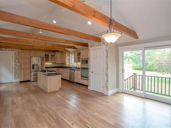 LOCATION..'LOCATION...LOCATION. This tastefully crafted contemporary farmhouse, built in 2000, offers a blend of quality construction and modern amenities set on over 3 acres of picturesque land with 600' brook frontage and filtered mountain views. The main house features 3 bedrooms, including a first-floor master BR with ¾ bath and private access to a newly updated tiered deck overlooking the backyard with a fenced dog yard. There are 2 bedrooms on the 2nd floor, full bath and a versatile loft for added space. The heart of the home is the spacious kitchen with dining area, boasting cathedral ceilings, exposed beams, cherry flooring, and a slider that opens to newly updated composite deck, perfect for outdoor entertaining. The sunlit living room features a beautiful wood-burning fireplace, cathedral ceiling, beams, tiled flooring and radiant heat to create a warm and inviting atmosphere. The finished lower level offers more living space, with a family room, office, exercise room, ¾ bath, His & Hers closets, plus a storage room. There is also an ADU with 1 BR, 1.5 baths, granite countertops, new Energy Star appliances, tiled shower. stack W/D. and radiant heat -a perfect option for the extended family or for rental income. This home offers country living at its finest with grazing space for livestock & room for gardening...ideal for homesteading. New HWH, well tank, filtration system and 4 BR septic(2021). Owner is a NH licensed real estate broker.