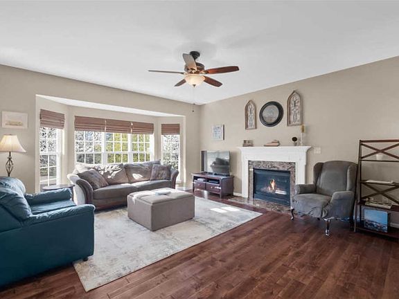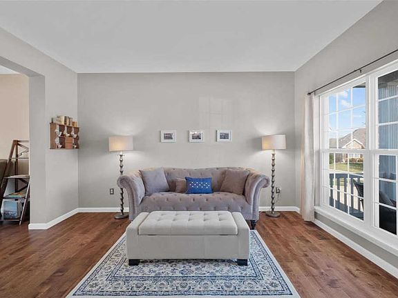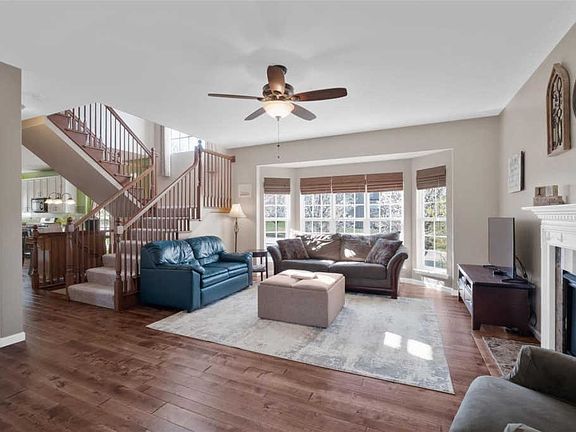 Soaring 9' ceilings & rich hardwood floors flow throughout the main level of this spacious 2-story, including the family room with a gas fireplace & bay window. Spacious kitchen features 42" white cabinets w/undercabinet lighting, breakfast bar island, pantry, & stainless steel appliances, including a 5-burner gas range w/convection oven. Formal dining room, front flex room, powder room & laundry room also on the main floor. Upstairs are 4 spacious bedrooms, including a luxurious owner's suite w/vaulted ceiling, private sitting area, walk-in closet w/custom organizer, & ensuite bath w/dual sinks, separate shower & soaking tub. Walk-out lower level w/roughed-in bath ready for your custom finish. Dual, zoned HVAC. Semi-private vinyl fencing encloses the level back yard w/a patio. Located on a quiet cul-de-sac. Neighborhood pool, lake, walking trails, playgrounds, BB court & more. Easy access to I-64/364, shopping, dining & conveniences. Wentzville (Liberty High) Schools. See it today!