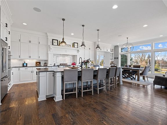 Welcome to this beautifully designed & spacious 7 bedroom, 6 ½ bathroom, 4-car garage home. The wide-open concept is an entertainer’s dream! The kitchen’s details will immediately catch the eye w/ bright white cabinets & quartz countertops that surround stylish stainless-steel appliances.  Step outside to a paradise featuring a luxury pool, hot tub, outdoor kitchen & fireplaces.  Back inside, the staircase leads up to 3 spacious bedrooms w/walk-in closets on the second floor and 2 on the third floor, all with access to their own bathrooms. The Master Suite is a private retreat w/ a fireplace, wet bar, covered deck with separate fireplace, infinite closet space and a spa-like bathroom, featuring a large ceramic shower and soaking tub.
