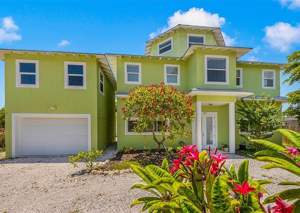 This unique 3 bedroom, 2 bathroom villa is situated on a desirable quiet street with close proximity to the Beach, Pine Ave, City Pier, and Anna Maria Island Community Center. The kitchen, living, and dining room have an open concept with soaring high ceilings and an abundance of natural light shining through. Featuring the master suite on the ground level and the other 2 bedrooms and 1 bathroom upstairs. The kitchen has stainless steel appliances, granite counter tops, eat-in bar area, and plenty of storage and cabinet space. There is a large garage, French doors, and plenty of parking in the driveway. You won't want to miss this affordable buy on Anna Maria Island!