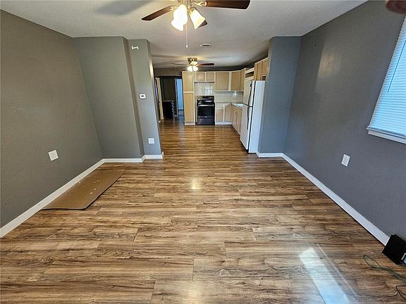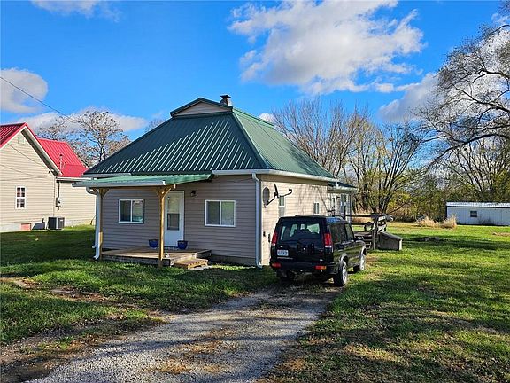 BIGGER THAN IT LOOKS! Experience small-town living in this 3-bedroom, all-level home on a spacious lot, perfect for outdoor entertaining. With ample room to build a shed or garage, add a pool, a trampoline—or both—this property offers many possibilities. Brand new gutters and soffits Nov. 2024. Inside, you'll find a convenient mudroom off the kitchen and a generously sized main floor laundry room. The middle bedroom features a built-in full-size loft bed with stairs that double as storage, providing space underneath for a desk, toys, or additional furniture. The front bedroom includes a wardrobe that stays with the home. The property includes an owned propane tank.