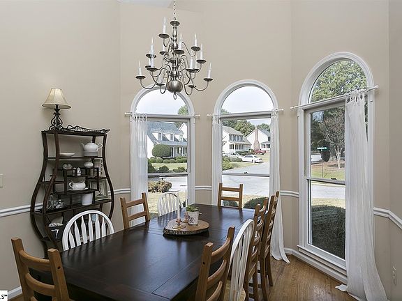 Charming, Move-in Ready Home! Conveniently located just minutes away from Woodruff Rd. and I-385, yet tucked away in a small and quiet neighborhood. As you approach this home you are greeted by the picturesque rocking chair front porch. Inside, hardwood floors span the main living areas and huge windows throughout give the home exceptional natural light. The dining room is perfect for entertaining; boasting a cathedral ceiling and beautiful bay window. The kitchen opens up to the bright breakfast room and living area. On the main level is the large master bedroom suite, which features an oversized walk-in closet and full bath with double sink vanity. Also on the main floor is a second bedroom and another full bath. The large living room has a wonderful brick fireplace and French doors opening out to the deck. A big backyard provides tons of space for play. And the 2-car side entry garage give great access to the home. Upstairs, there are two additional over-sized bedrooms that share a jack and jill bathroom. The 2nd Floor also has storage space galore with unbelievable closet and walk-in attic storage space. Upgraded fixtures and tasteful decorating makes this home show beautifully! Hurry and make your appointment to see it today!